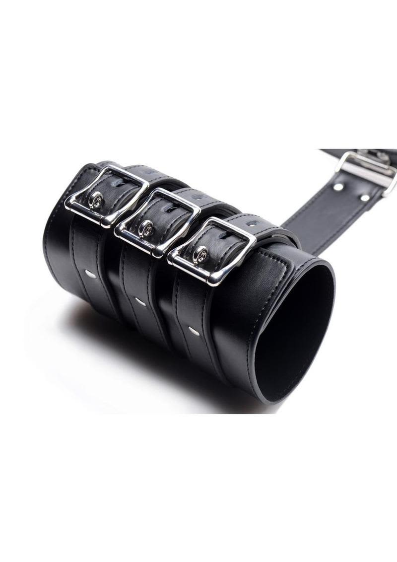 Trap your submissives arms behind their back, while you have your way with them. Made with locking buckles, your plaything will be thoroughly trapped while you put them in any position you desire! Each arm strap is adjustable to accommodate many different sizes, wrapping around the biceps and forearms to keep your sub fully restrained. This bondage accessory will elevate your play sessions with its unique and attractive design!